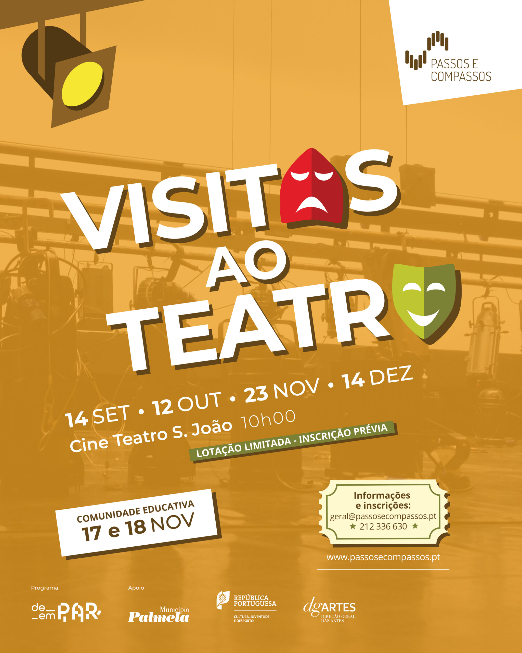 A Passos e Compassos, propõe visitas ao Cine Teatro S. João. Momentos culturais e lúdicos, para visitar o edifício, conhecer a sua história e segredos, desvendar a produção de um espetáculo, os bastidores, técnicas de som e luz e partilhar curiosidades do mundo do espetáculo....